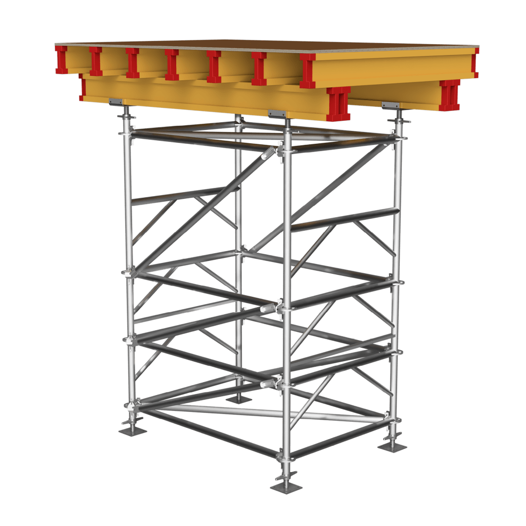 Le TG60 est une solution complète pour construire en toute sécurité, conforme MDS, simplement et rapidement des supports lourds devant pouvoir supporter des charges verticales importantes. La tour peut être construite couchée puis redressée et déplacée avec une grue. Pour les mouvements horizontaux, l’installation peut être déplacée avec des essieux spéciaux. À l’aide de diagonales et de poutres, des platelages en acier peut être fixé à l’intérieur de la tour, ce qui permet d’obtenir une plate-forme de travail sûr.